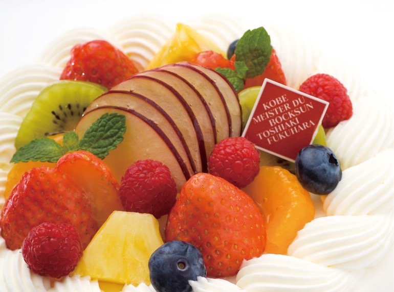 ふわふわのスポンジに、いちごやベリー、キウイなどの新鮮なフルーツをふんだんに使った、神戸マイスター・福原敏晃オリジナルのデコレーションケーキです。素材にこだわり、腕によりをかけて作り上げました。