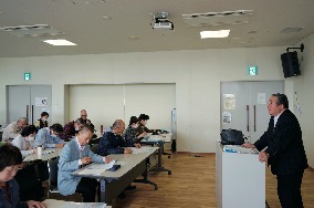 去る4月22日はウィズあかしで歴史講座が開催され、田辺先生が「グローバル世界の完成─未知なる南方大陸の海域─」をテーマにレクチャー。ヨーロッパ世界にとって長らく未知の領域だったオーストラリア、タスマニア、ニュージーランドが、どのような経緯で発見され、そこにはどんな背景があったかを、古代ギリシャ人の世界観、オスマン・トルコの成立、ルターの宗教改革などとの関係などから立体的に解説した。この歴史の流れに日本も無関係ではなく、ポルトガル人による鉄砲やキリスト教の伝来、江戸幕府の貿易政策、島原の乱とも深く関わっているという話に、会のメンバーは熱心に耳を傾けていた。