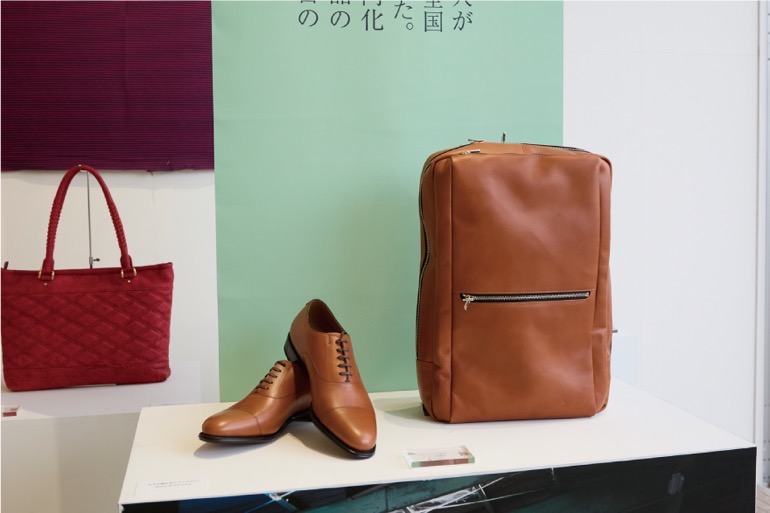 国内最大級のレザーコンテスト2024ナンバー1革製品に選ばれた「リーガル」の靴や「WishBorn」のバッグなども展示