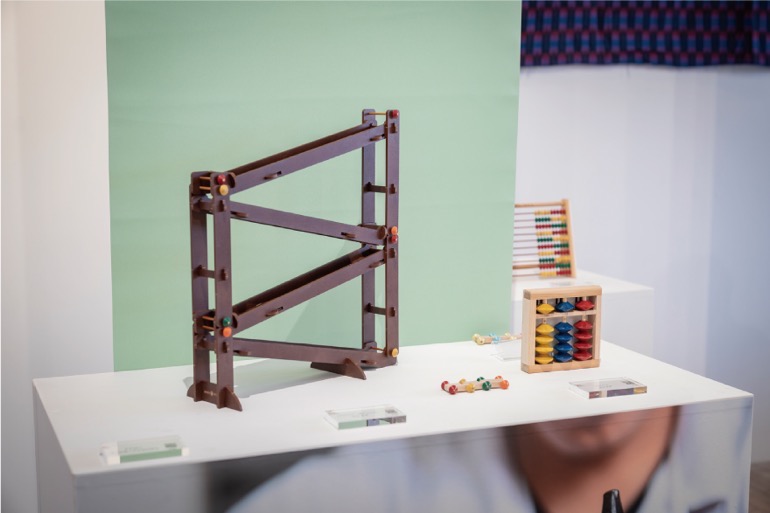 そろばん玉がタイヤになったスライダーなど、伝統工芸品の技術を現代的なデザインにアレンジした作品が注目を集める