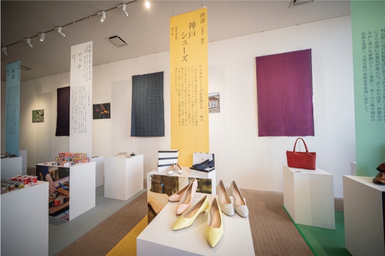 神戸らしいデザインでファッション性と履きやすさや機能性も兼ね備えた靴。華やかなカラーのパンプスを展示
