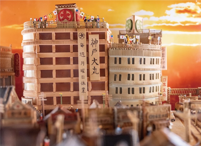 洋菓子店「ケーキハウス ツマガリ」による1960年代の神戸・元町の街並みを再現した工芸菓子が来場者の目を引いていた
