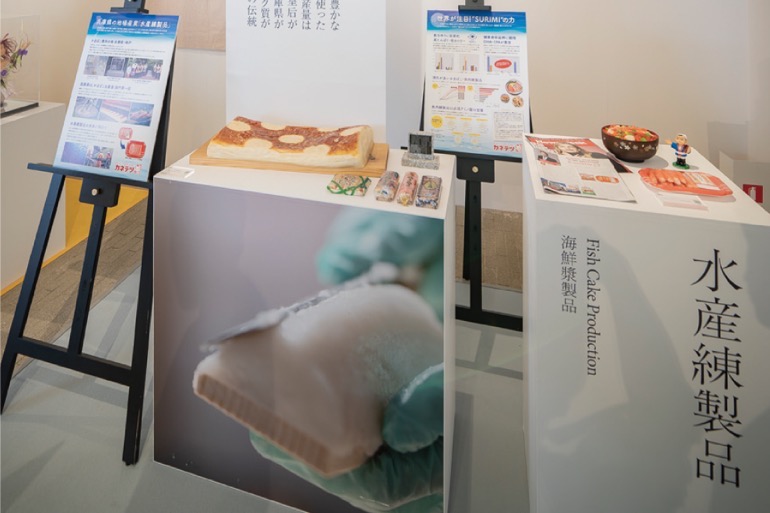 世界的に注目を集めるヘルシーフード「SURIMI(すりみ)」。栄養面の魅力に加え、伝統的かつ精緻な加工技術から生まれる練り製品の広がりを、写真やレプリカを通じて紹介
