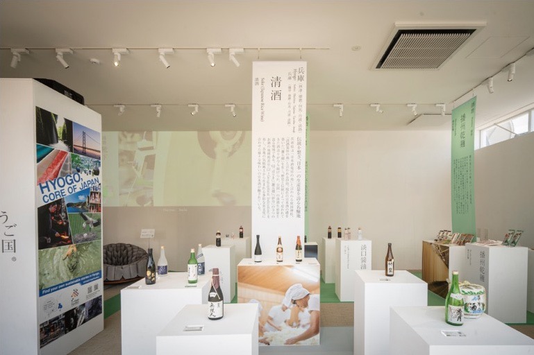 摂津、播磨、但馬、丹波、淡路の清酒をラインナップ。会場での振る舞い酒を楽しみながら、展示を見る日本酒好きな来場者が多数