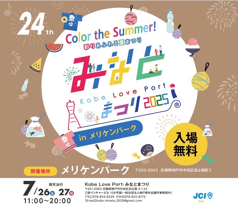 今年は「Color the Summer!彩りあふれる夏まつり」をテーマに掲げ、7月26日・27日にメリケンパークで開催します。神戸の活性化やまちがより良くなることを祈り、神戸市外からも観光誘致できるまつりとして在神企業様や学生と一体となり企画しております。テーマである「彩りあふれる」フォトジェニックエリアなども設けていますので、ぜひご来場ください。また、阪神・淡路大震災から30年の節目として、追悼の意味を込めたナイトバブルショーが注目です!