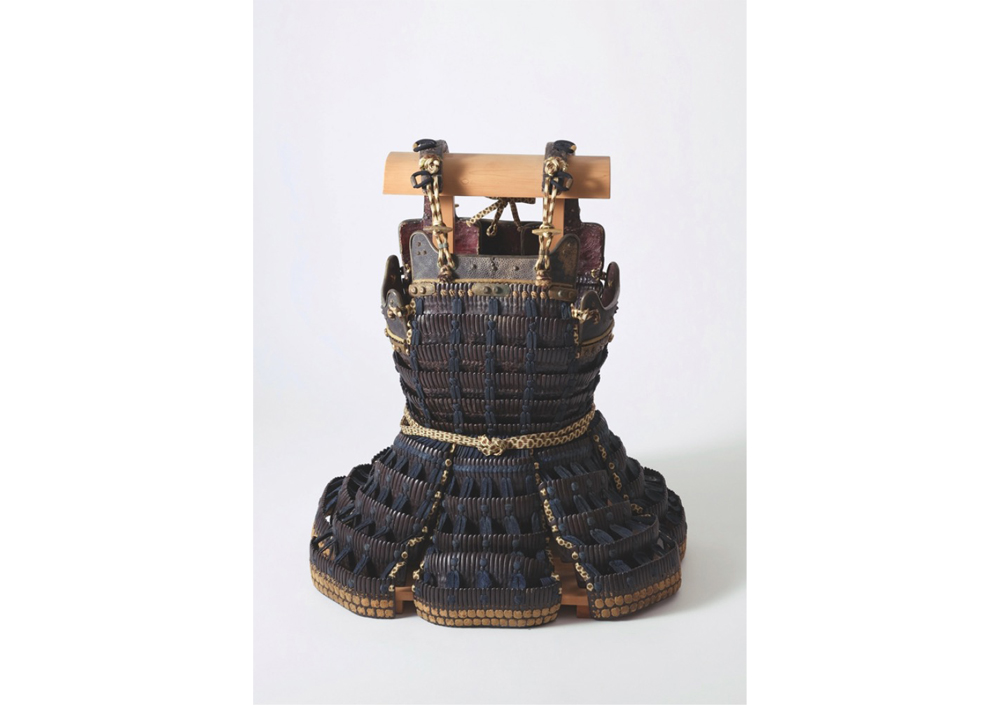 紺糸の素懸威で革包の錣(しころ)一段下げ。「色々威腹巻」に付属するが、本来は別物であったと考えられている