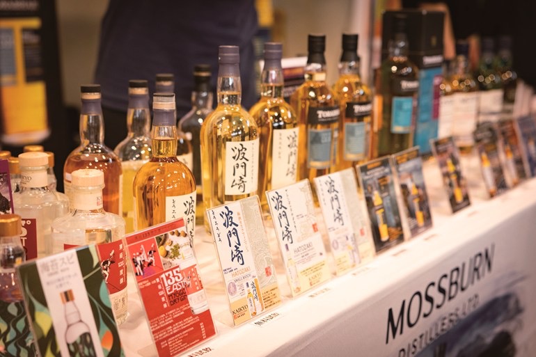 明石酒類醸造の海峡蒸溜所では、​最高品質のウイスキー「波門崎(HATOZAKI)ウイスキー」をはじめ、5月23日より数量限定で発売するスコットランドの姉妹蒸溜所「トルベイグ蒸溜所のシングルモルトウイスキー」も試飲用にラインナップ。
