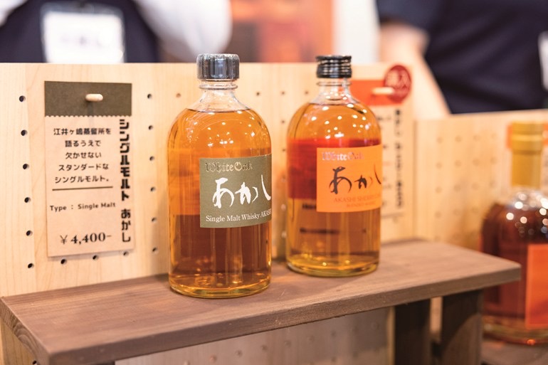 地ウイスキー「シングルモルトあかし」のイベント限定ボトル80本を販売。新ブランド「香掬(カスク)」は多彩な熟成樽と向き合い、原酒が持つ香りと個性を丁寧に掬いあげたシングルモルト。5月発売の最新作を先行販売。