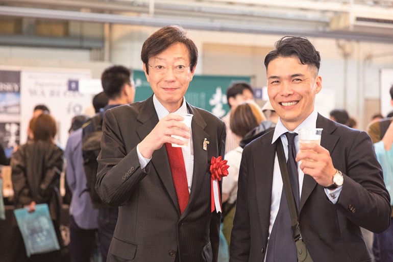 久元市長と「ウイスキーハーバー神戸」の実行委員長を務める宮森和哉さん(The Nineteenth Bar代表)