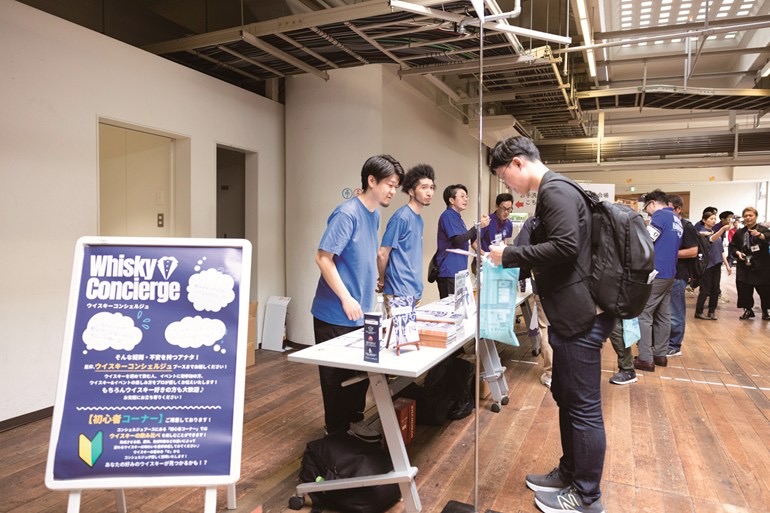 名古屋、横浜、京都、福岡のバーテンダーさんがコンシェルジュとして常駐。回り方を相談できるほか、自分の好みがわからない人は、味わいの異なる3種を飲み比べして、好きなテイストを選択。それに合わせたおすすめブースを教えてもらえる。