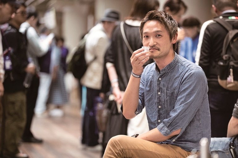 地元のバー「Bar 西中」さんが出店すると聞いて来場した姫路のイケメンさん。「多彩な蒸留所が一堂に集まるイベントゆえ、普段飲まないボトルに挑戦! 『新道蒸溜所』の栗樽由来のクラフトウイスキーが美味しかったです。甘やかな栗の香りを楽しみました」とにっこり。