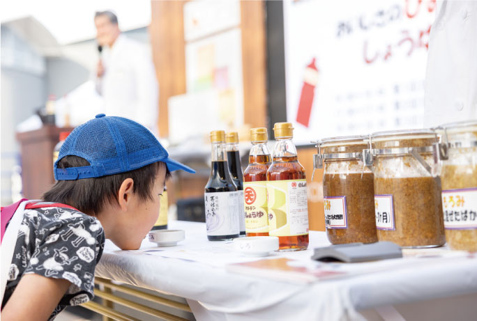 大阪から来た家族の男の子はヒガシマル醤油ファン。たつのへ工場見学にもぜひ行きたい!と目を輝かせていた