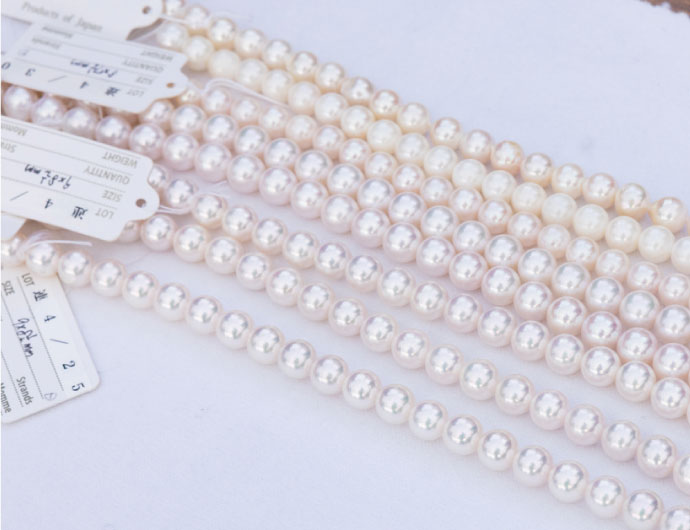 日本の真珠輸出のうち、約8割が神戸から行なわれ、世界に流通する真珠の大半が神戸で選別・加工されている。実演セミナーでは“真珠の街”として築いてきた神戸の歴史や真珠の価値を決める加工処理について学習。後半は8つのネックレスを用いて評価に挑戦。色や傷、形、照り、サイズなどを見て、触って100万円以上の価値がある真珠、販売基準を下回る低品質なものなど、見分けていく。品質の判断基準を学んで、今後の購入時に役立ててもらうのが目的。