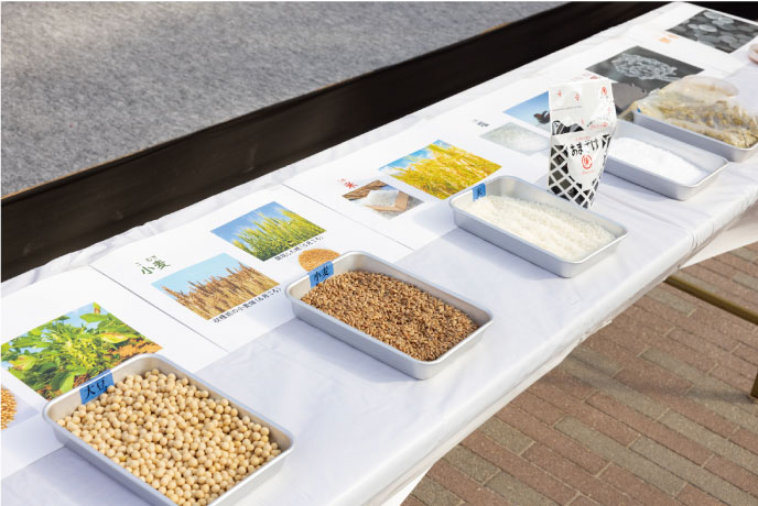 “淡口しょうゆ”を名産とする龍野からは、しょうゆの原料や醸造方法について知る出前授業を実施。醤油の香りの成分は何種類? 答えはリンゴやバラの香りなど、300種以上の成分が混ざり独特の香りを作り出している…など、クイズ形式で実際に匂いを嗅いだり、材料に触ったりしながら、知識を深めていく。日本の食文化を支えてきた発酵調味料、しょうゆが世界から注目される秘密を探るユニークな授業で、子供達も元気に受け答えして楽しんだ。