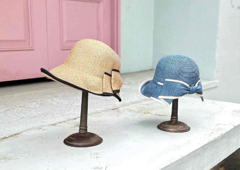 後ろに同素材のリボンを取り付け、デザイン性を感じられるハット。被る位置に変化をつけることで、印象も変えることができます。つばもしっかりした長さで、紫外線遮蔽率は98%以上あり、夏の日除け対策にも活躍します。