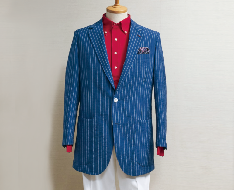 お洒落なカラーパンツを組み合わせる「クール・ジャケット」は、上質なサッカー生地を使用しており、軽くて、涼しく、シワになりにくく快適にお過ごしいただけます。ラグジュアリーブランド愛用の方に人気のある紳士服店です。