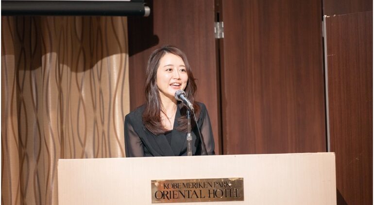 神戸JC 上根彩理事長。「伝えることと伝わることの違いを実感し、考えを発信する場として有効に活用してください」