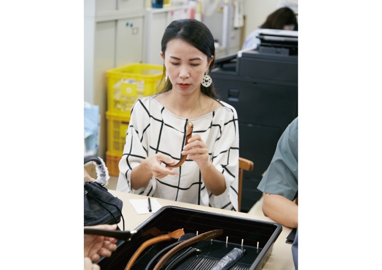 公益財団法人神戸ファッション協会と財団法人台湾デザイン研究院(TDRI)の連携プロジェクトが始まったのは2024年。兵庫県が誇る産業や技術、素材の多様性を、台湾(海外)の新たな視点や技術と融合させ、新しい価値創造に繋げていくことが目的。台湾と日本のデザイン交流をさらに深めることにも期待が寄せられる。まずは同年8月に台湾のクリエーターが丹波焼、淡路瓦、淡路の線香、神戸レザー、豊岡鞄など兵庫の産地や職人を訪ね、その普遍的な価値と新しい可能性を探ることからスタート。伝統の技を目にすることで得たインスピレーションをもとに、各産地の職人たちと意見を交換しながら、共創プロジェクトを進めていった。実際のモノづくりではフレッシュな発想を持つ国立台湾師範大学の大学生も参加。さらに台湾の製造業が盛んな「彰化」とも連携。約半年の期間を経て、彰化産の素材や技術と兵庫の工芸を融合させた作品が誕生した。