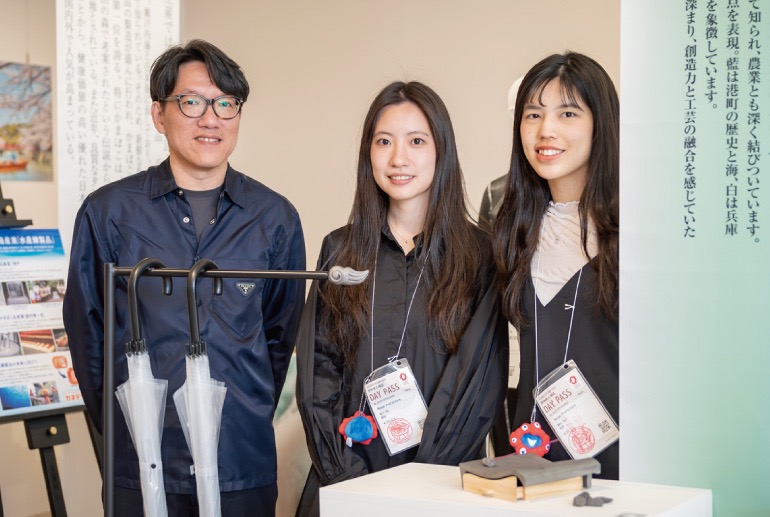 完成作品は、4月26日から4月30日、大阪・関西万博会場内のギャラリーWESTで展示。万博がめざす「未来への文化共創」の一環として、「HYOGO×TDRIものづくりとデザインの融合―暮らしを彩る、兵庫と台湾彰化の共創」をテーマに、コラボレーション作品を披露した。淡路瓦工房「タツミ」と共創した台湾の工業デザイナー周育潤さんと国立台湾師範大学の学生達も来場。「コンクリートマンションが増え、瓦を持つ家が少なくなった今、伝統的な家屋の屋根の役割を現代の暮らしに取り入れることで、”家“とのつながりを再解釈した」と作品への想いを熱く語った。また豊岡鞄専門企業「モリタ」とコラボレーションした台湾のクラフトユニット本質創作室の李雅靖さんは「自分でも使いたい」と完成したバッグを手にとりながら、展示作品としてではなく、実用化への自信を見せた。作品の一部は8月に台北市で実施される「2025台湾文化博覧会(台湾クリエイティブエキスポ)」に参加し、バイヤーにアピール。販売ルートの構築を図るほか、10月に彰化県内で開催される「2025台湾設計展(台湾デザインエキスポ)」にも出品。世界への発信を推進していく。
