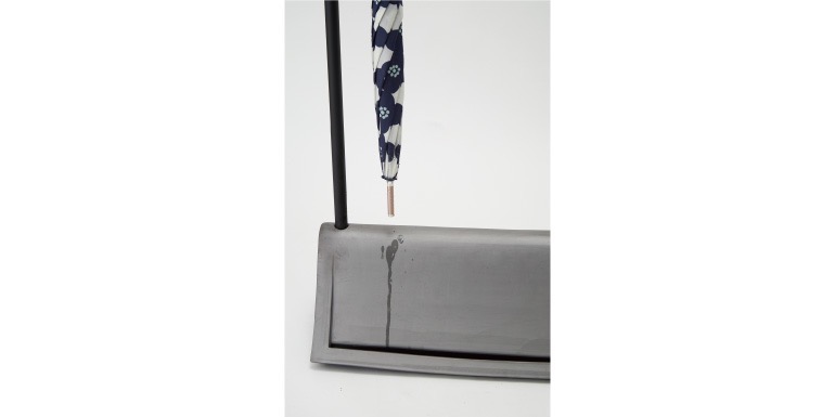 瓦に落ちる雨音「ボツボツ」から着想を得たユニークな作品。下部は雨水が自然に流れ込む仕組みが施され、フレームには職人が手がけた雲の装飾や縁起の良い宝珠形のパーツをプラス。鬼瓦の彫刻技術を活かし、雲や宝珠形の装飾を取り入れることで、伝統工芸を機能と造形美を兼ね備えた現代的なインテリア用品へと昇華させた。