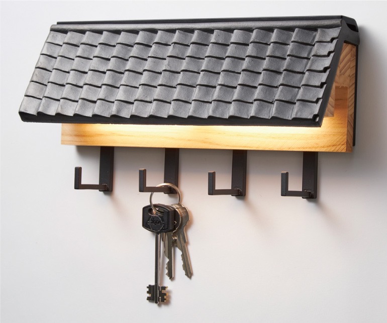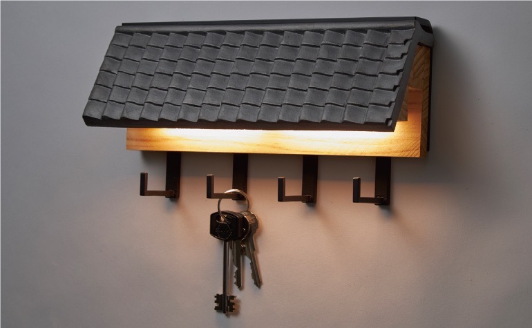 屋内と屋外をつなぐ玄関に着目し、実用性と温もりを兼ね備えたキーラックを創作。淡路瓦の屋根の形を模したデザインで、伝統工芸を身近な存在として再認識する機会を生み出す。鍵を掛けるとLEDが点灯し、帰宅する人を優しく迎える仕組み。モジュール式構造でパーツの増減が可能なため、住宅の規模や用途に応じた使い方が可能。