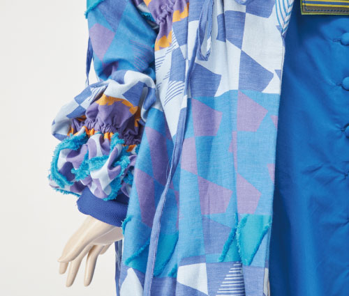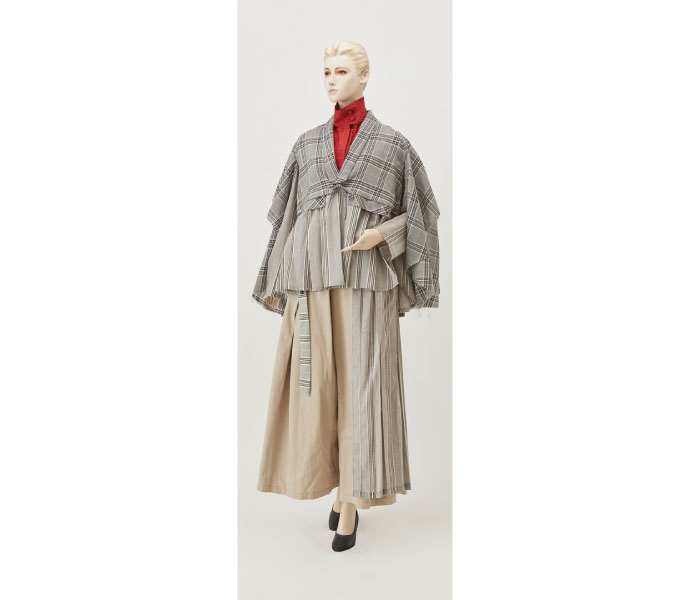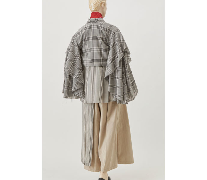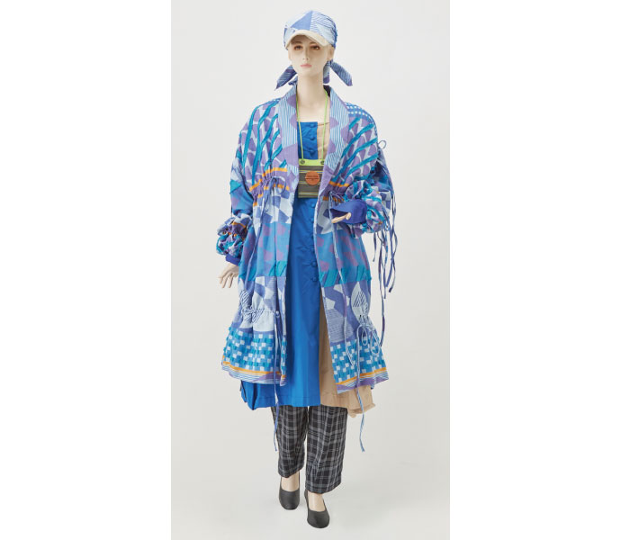 「間柄」は和辻哲郎の倫理学の核であり、人間関係や社会性の密接な繋がりを主張するもの。デザインにはパッチワークとドローストリングのディテールを組み合わせ、人間関係のネットワークと自然との関係の紡ぎを表現。着物の帯締めなど、東方文明の服飾によく見られる伝統的な要素を採用しながら、若者層も意識して、ワンピース×アウターのレイヤードなど、現代的なスタイリングを採用。