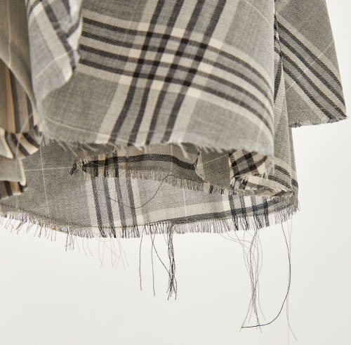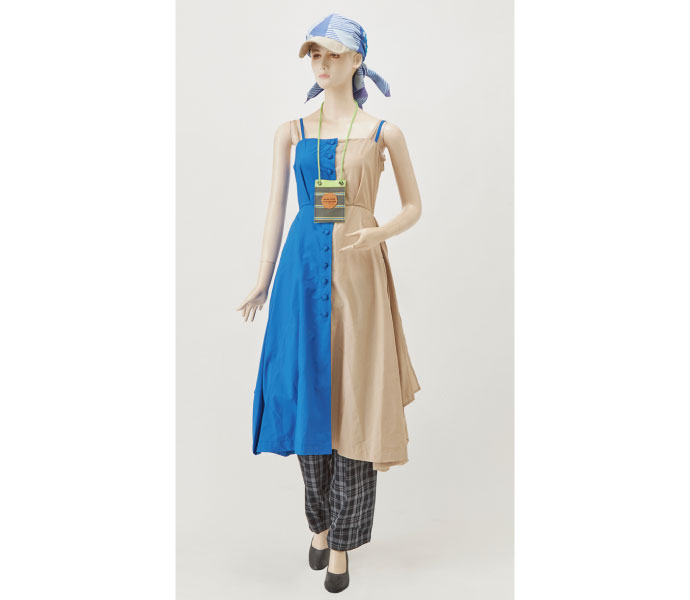 台湾実践大学ファッションデザイン学科の副教授・董雅卉(Masa Tung)さんが「播州織」の産元と協力し、生地の魅力を最大限に引き出した3つのスタイルを完成させた。公益財団法人神戸ファッション協会が播州織PR活動の一環として企画。コラボレーションのオファーを受けた董さんは2024年11月、播州織の産地、兵庫県北播磨地域(西脇市・多可町)を訪問。その繊細な織り目や美しい色彩に感動し、播州織が地場産業として発展してきた歴史や環境、文化的な背景も含めて表現したいと考えたそう。
