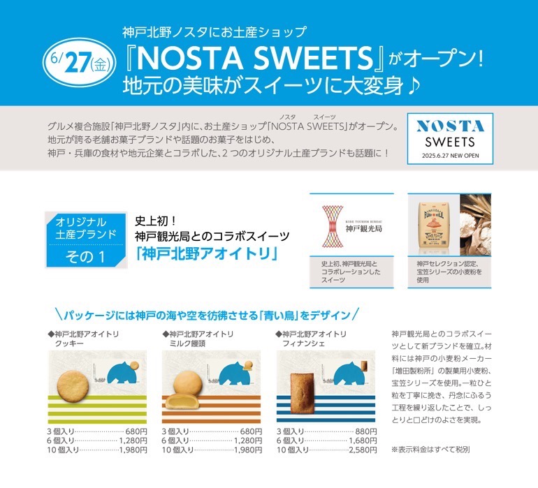 グルメ複合施設「神戸北野ノスタ」内に、お土産ショップ「NOSTA SWEETS」がオープン。