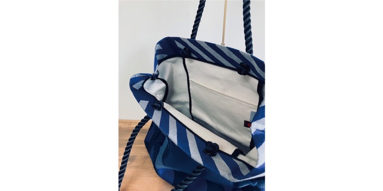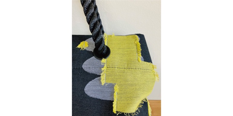 播州織のテキスタイルブランド「POLS」と、2023年のひょうご国プロジェクトでの出会いをきっかけに、その素材に魅了されアプローチに至ります。「Kram」とは、スウェーデン語で「抱擁・ハグ」などを意味します。その言葉のように「THYMEBUCKS」の持ち味を「POLS」の素材で表現することで、ハグをして溶け合ったように心地よく、そして個性の光るバッグになりました。