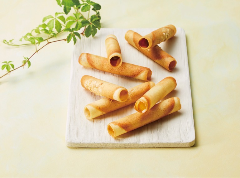 チュイールやラングドシャ生地で、アーモンドミルクチョコレートとホワイトチョコレートをくるり。1976年の誕生以来、愛され続けるロングセラー。