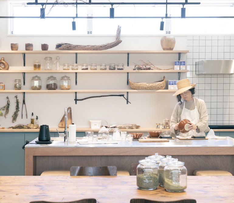 2階にはキッチンがあり植物にふれる体験ができる施設に。ハーバリストの伊藤友美さん監修による、ハーブティーの試飲をはじめ体験メニューも充実