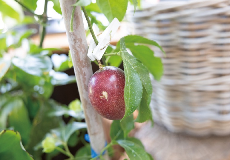 シンボルツリーはシジギラム。店内でもパイナップルやパッションフルーツなどの季節の果実がなる。レストランの壁面を彩るコーヒーの木には実際に実がなっているなど、園芸家の藤田毅さんがプロデュースを行う