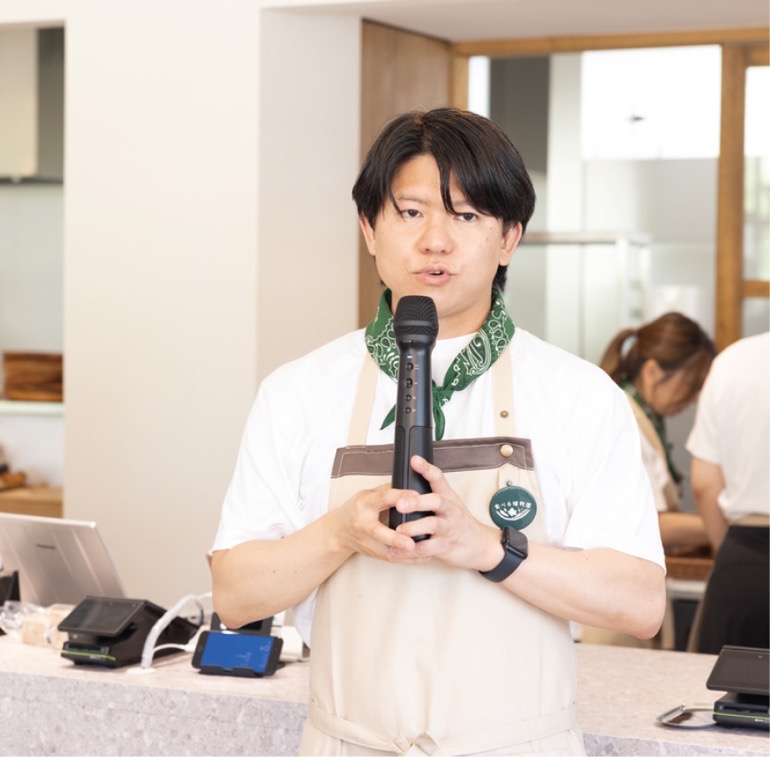 1階にオープンした「みなとやまベーカリー」。水族館のカメをモチーフにしたメロンパン「亀パン」など熟練のブーランジェが手掛ける。「食べる植物園」レストランのメニュー開発を担当する株式会社ワールド・ワン企画開発部の川島直之さん