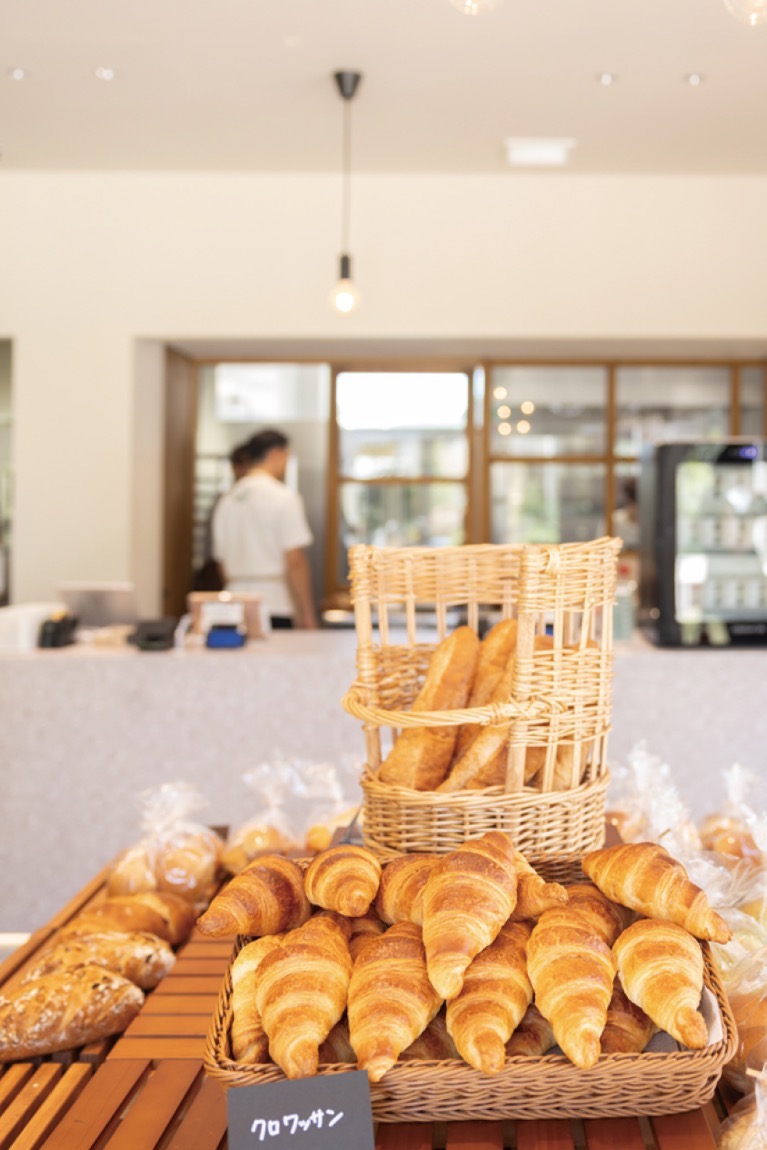さらに、敷地に入ってすぐの場所に「みなとやまベーカリー」が開店。散策と湊山のやまなみをイメージしたロゴデザインの通り親しみやすい雰囲気。そのロゴにも似た山食パンも、水族館のカメをモチーフとしたメロンパン「亀パン」も、熟練のブーランジェが手仕込み。地域の人たちがお散歩がてらに普段使いできる街のパン屋さんとしてはもちろん、ドリンクと一緒にテイクアウトしてテラスでいただくのも心地良い。