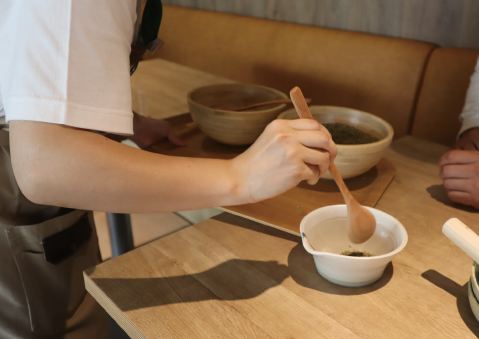 ローズマリーなどのハーブと粗塩をすり鉢でブレンド。自身でハーブソルトを作って調味料として楽しめる