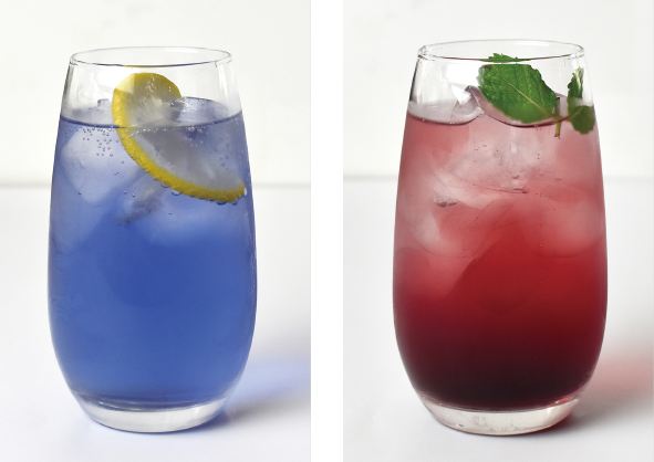 レモンを搾ると色が変化する「バタフライブルーコーラ」やエルダーフラワーシロップのジュースほか、自家製ハーブティ、クラフトビールもおすすめ