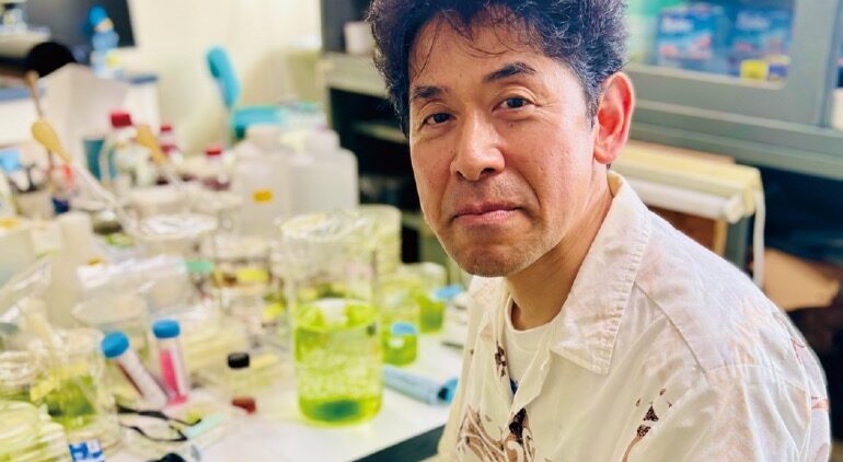 この度、講師を務める神戸電子専門学校と正式にコラボが実現しドキュメンタリー番組を制作することになった。タイトルは『再生のフロンティア』。持続可能な地域産業と地域社会を共創する人々に焦点をあて生徒たちで制作した。課題解決にむけて日夜、研究開発に取り組む方々の真剣なまなざしはリアルな教材となりかけがえのない経験となった。「学生時代、海藻の仕組みに興味が湧き研究を始めました。現在、(青のり)陸上養殖を開発し企業と協力して生産しています。次世代を担うのは若い人たち。積極的に意見を取り入れていきたい」と語る。海藻が紡ぐ未来の物語は始まっている。