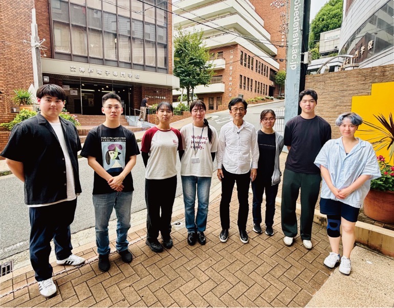 「芸術の秋」と言うことで北野町にある神戸電子専門学校にやって来た。トノサマバッタが登場するユニークなCMでお馴染み、電子だけではなくIT、デザイン、音楽、ゲームまで幅広い分野で未来のクリエイターを輩出している。今回は動画プロモーションコースの学生たちにも協力を仰ぎながら校長の福岡壯治さんを突撃取材。お昼休みを告げるチャイムが鳴り響き、緊張した面持ちでカメラを構える学生記者たち。校舎の自動ドアがゆっくりと開いた瞬間、「校長!お願いします!」と威勢の良い声がこだまする。その熱量に戸惑いながら「わかりました」と快くインタビューに応えてくれた。