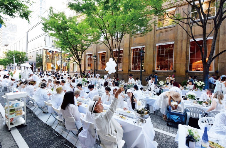 Kobe White Dinner 2018 @旧居留地。白をドレスコードとし、食事、飲み物、装飾を持ち寄り、公共空間を非日常空間に変える市民イベントの様子