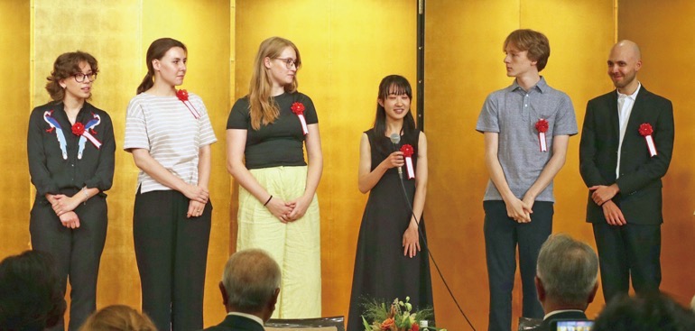 9月7日、披露演奏会を終えた6人の若きフルーティストを迎え、ラ・スイート神戸オーシャンガーデンで入賞祝賀会が開かれた。主催する「神戸マザーポートクラブ」は同コンクールが存続の危機に陥った2017年、地元経済人有志が継続のための募金活動を行う一方で、入賞者を招待してガラ・コンサート、ガラ・パーティーを開き、この活動を母体にして18年8月に創設された。現在、会員企業数は90以上にのぼり、芸術文化の振興と神戸のまち全体の魅力づくりやグレードアップに貢献している。同クラブの伊藤紀美子共同代表は入賞者を称え「今後の活躍に期待するとともに、神戸を第二の故郷と思っていただき演奏してくださる日を楽しみにしています」と話した。