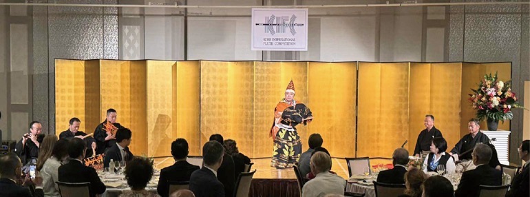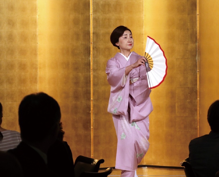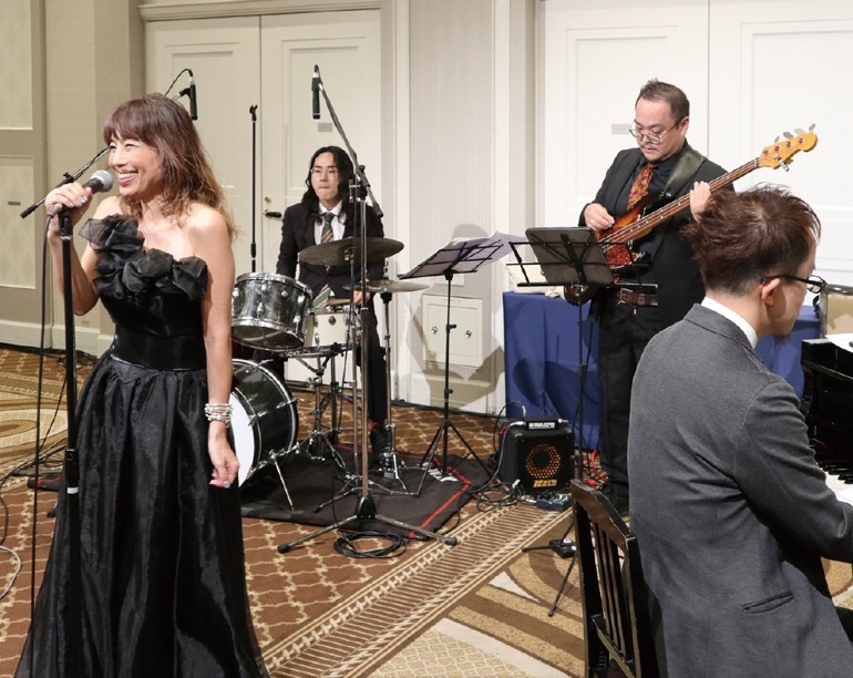 日本舞踊で始まり、ジャズ、歌曲と続く多彩な音楽とパフォーマンスを楽しみながら参加者は賑やかに会食、歓談の時間を過ごした。神戸マザーポートクラブの道満雅彦氏が閉会の挨拶として、「会員数100社を目指します。皆様、ぜひご協力を!」と呼びかけ、パーティーは盛況のうちに散会となった。