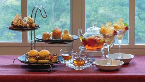 11月のアフタヌーンティーは、秋の恵みをふんだんに取り入れた華やかな内容でお届けいたします。丹波栗の深い味わいを引き立てたモンブラン、ラフランスとバニラの香りが織りなす上品なムース、爽やかな温州みかんと濃厚なチョコレートを合わせたパンナコッタ、そしてなめらかで甘み豊かな安納芋のスイートポテトなど、季節ならではのスイーツが揃います。香ばしいお芋とプルーンを組み合わせたスコーンや、ラフランスを贅沢に使ったパフェ仕立てもご用意。実りの季節を堪能する、優雅で贅沢なティータイムをぜひご体験ください。