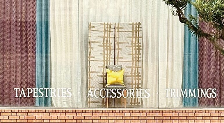 メゾンデコールショップのウインドウディスプレイを、NOBILIS PARISの幾何学ベルベットにブルーベルベットをアクセントにした、シックで洗練されたカーテンに模様替えしました。メタリックゴールドの格子柄のスクリーンが、空間をスタイリッシュな印象に演出しています。NOBILIS社の唯一無二のテキスタイルで、あなただけの個性が光るカーテンをご提案いたしますのでお気軽にご相談ください。