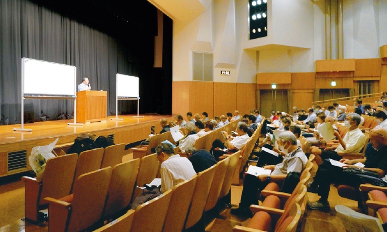 2025年度のレクチャーは9月18日、10月9日、11月20日の日程で、新長田駅前のピフレホールで開講。その第2回、10月9日は「アフラシア(旧)世界の一体化」をテーマに、「世界」がどのように認識されてきたかを時代を追いながら田辺先生が解説した。