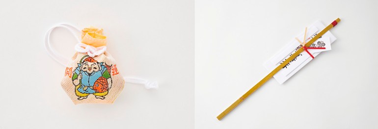 十日えびすでは福笹をはじめ、熊手や福箕、宝船、鯛おみくじ、福小槌など、縁起のよい授与品がたくさん。