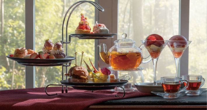 年の初めを苺の香りと共に華やかに過ごすアフタヌーンティー。やさしい甘さが広がる〈苺と練乳ミルクのムース〉、あまおう苺を贅沢に使った〈クレームブリュレタルト〉、苺とラズベリーが寄り添う〈ルリジューズ〉など、艶やかなスイーツを揃えました。さらに、爽やかな酸味が心地よい〈苺のレアチーズケーキ〉、香り豊かな〈苺のスコーン〉、季節のセイボリーもご用意。六甲山サイレンスリゾートならではの静けさと新年の森の澄んだ空気に包まれながら、苺づくしの優雅な新年のティータイムをお楽しみください。