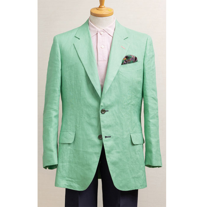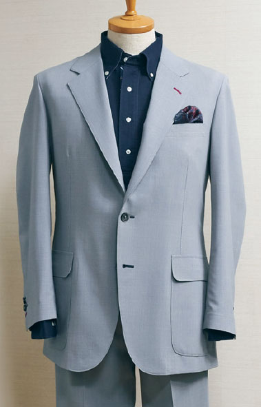 ところが最近、日本に四季がなくなり、夏と冬の二季になりました。春という季節が短くなり、秋口まで着用できる軽くて、春先から涼しいジャケットが欲しいという多くのご要望を頂きます。そこで、COOL SUITから余分なものを取り外して、かつ型崩れしない「ウルトラ・ライト・クールスーツ&ジャケット」を開発。肩パットは入れず丸みを付け、ポケットを最小限にしました。「新年早々、春夏服?」と思われるかもしれませんが、お客様の一着、一着が職人の手作業によるフルオーダーですので、最低でも1.5~2か月はお待ちいただくことになりますので、早めにご提案しています。