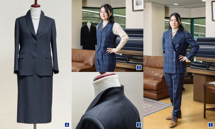 ミセス(不動産会社社長令夫人のスーツ)には、ソフトでストレッチ性のある服地をおすすめしています。(写真3・4)