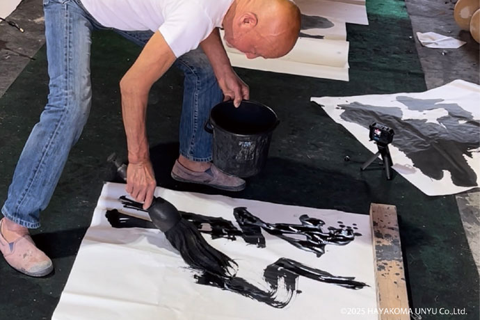 辻村史朗氏の奈良のアトリエにて揮毫辻村史朗氏の奈良のアトリエにて揮毫