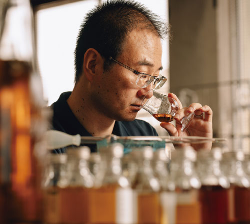 播磨灘を臨む江井ヶ島は、西灘と呼ばれる銘酒の郷。1888年に日本酒蔵元として創業した「江井ヶ嶋酒造」は、1919年にウイスキー製造免許を取得、1961年から本格的な製造を開始。以来、六十余年にわたり、日本酒造りで培った技術を活かしながらウイスキーを造り続けてきた。伝統的なバーボン樽やシェリー樽に、日本酒、ポートワイン、栗など多様な樽の個性を活かす製造にも挑戦。豊富な酒質を活かしたブレンデッドで、味の幅を広げている。飲みやすく落ち着いた味わいが日常にそっと寄り添う存在として、国内外のウイスキー好きを魅了中。